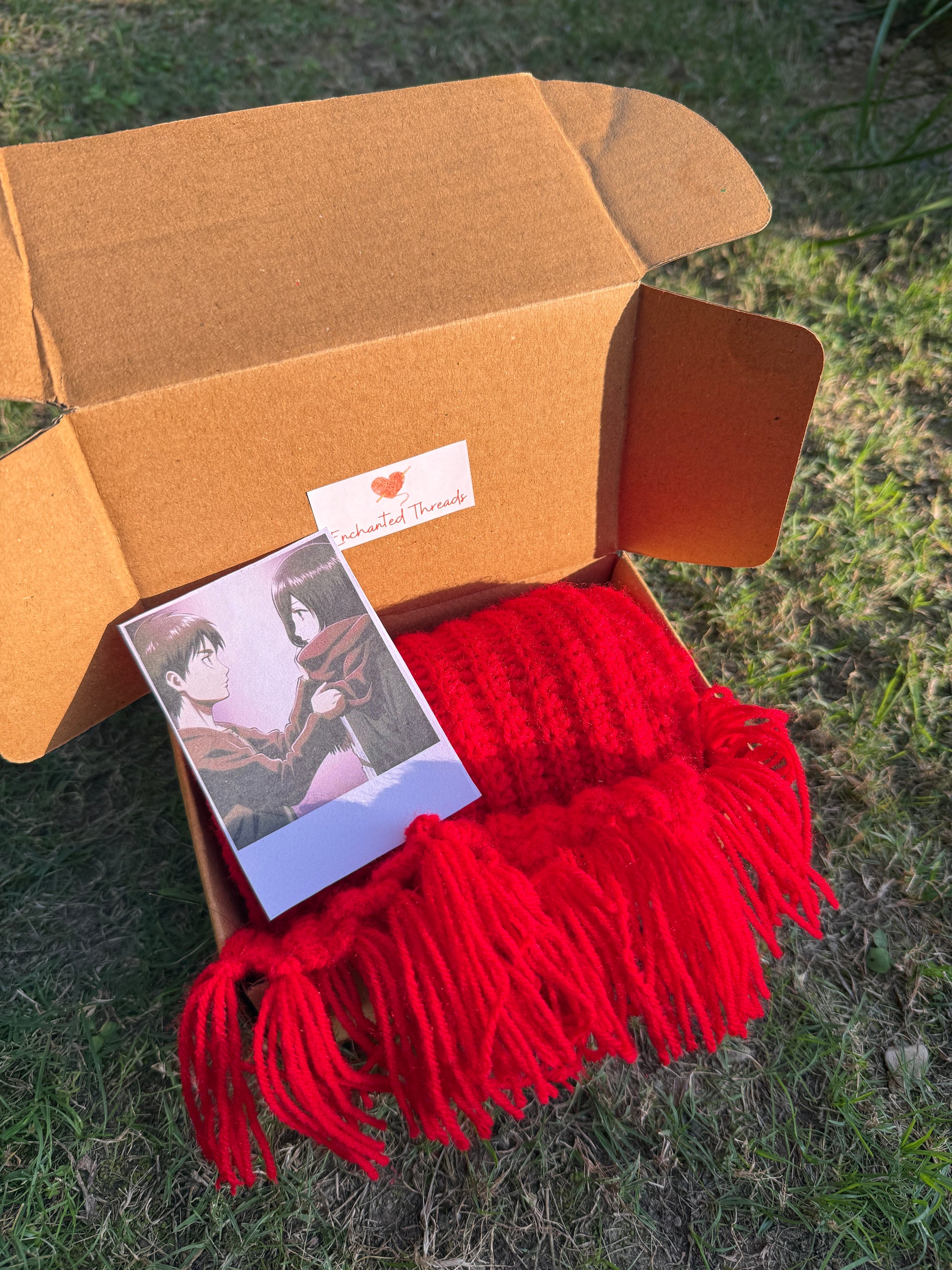 A bold red crochet scarf inspired by the famous Mikasa anime trend. Handmade with 100% acrylic yarn, soft, lightweight, and high-demand.