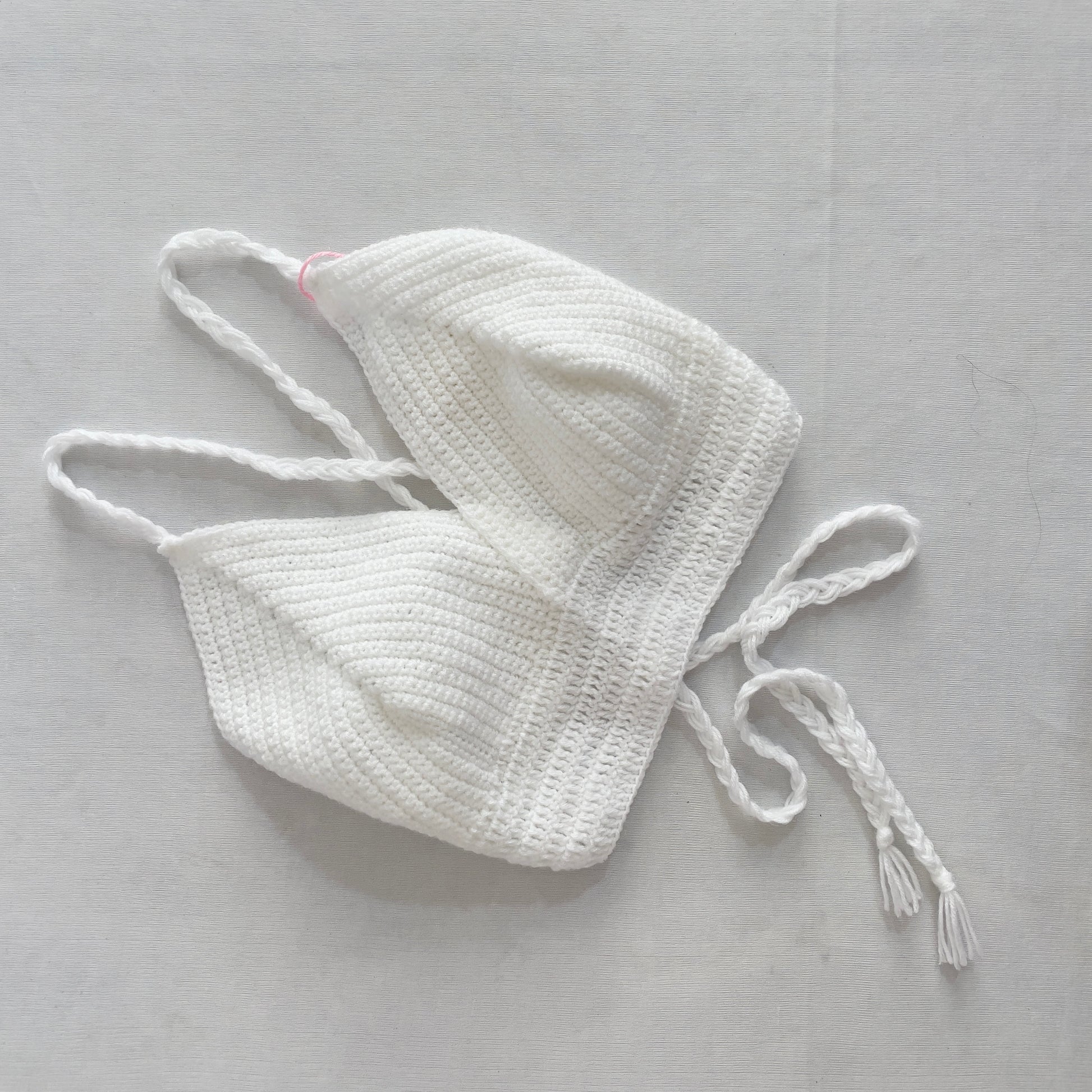 Sleeveless, fitted crop top in pointelle-knit crocheted look.