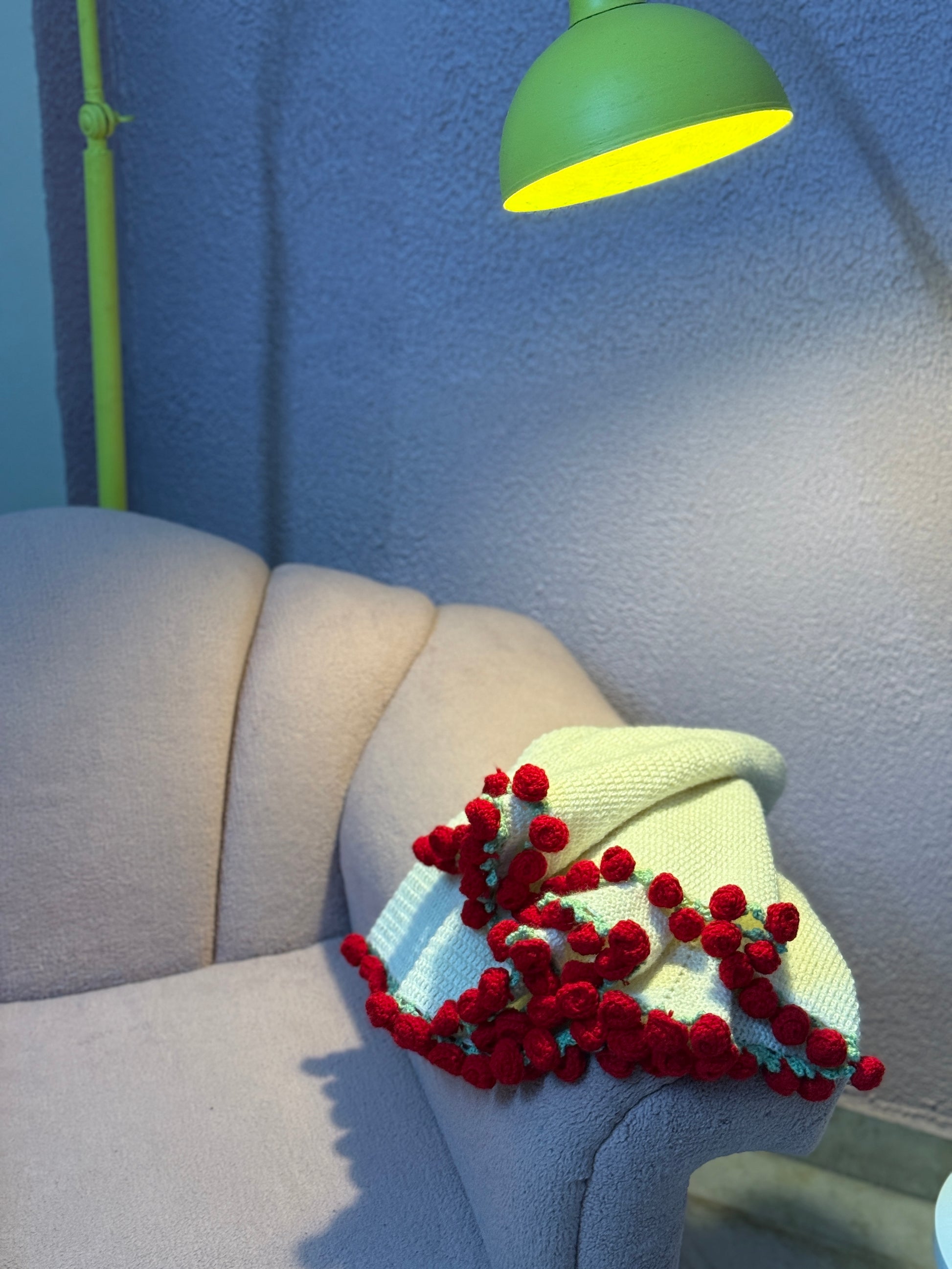 Indulge in the handcrafted beauty of this crochet viral bouquet blanket. Each stitch is lovingly created using high-quality 100% acrylic yarn, ensuring a soft and long-lasting finish. The captivating "viral" pattern forms the central focus, while a meticulously crocheted border of delicate roses adds a touch of timeless elegance. Measuring 35 inches in diameter, this blanket is a testament to the skill and artistry of crochet. Adding to its unique charm, this blanket can also be artfully folded to resemble a beautiful bouquet, making it a truly special and versatile piece.