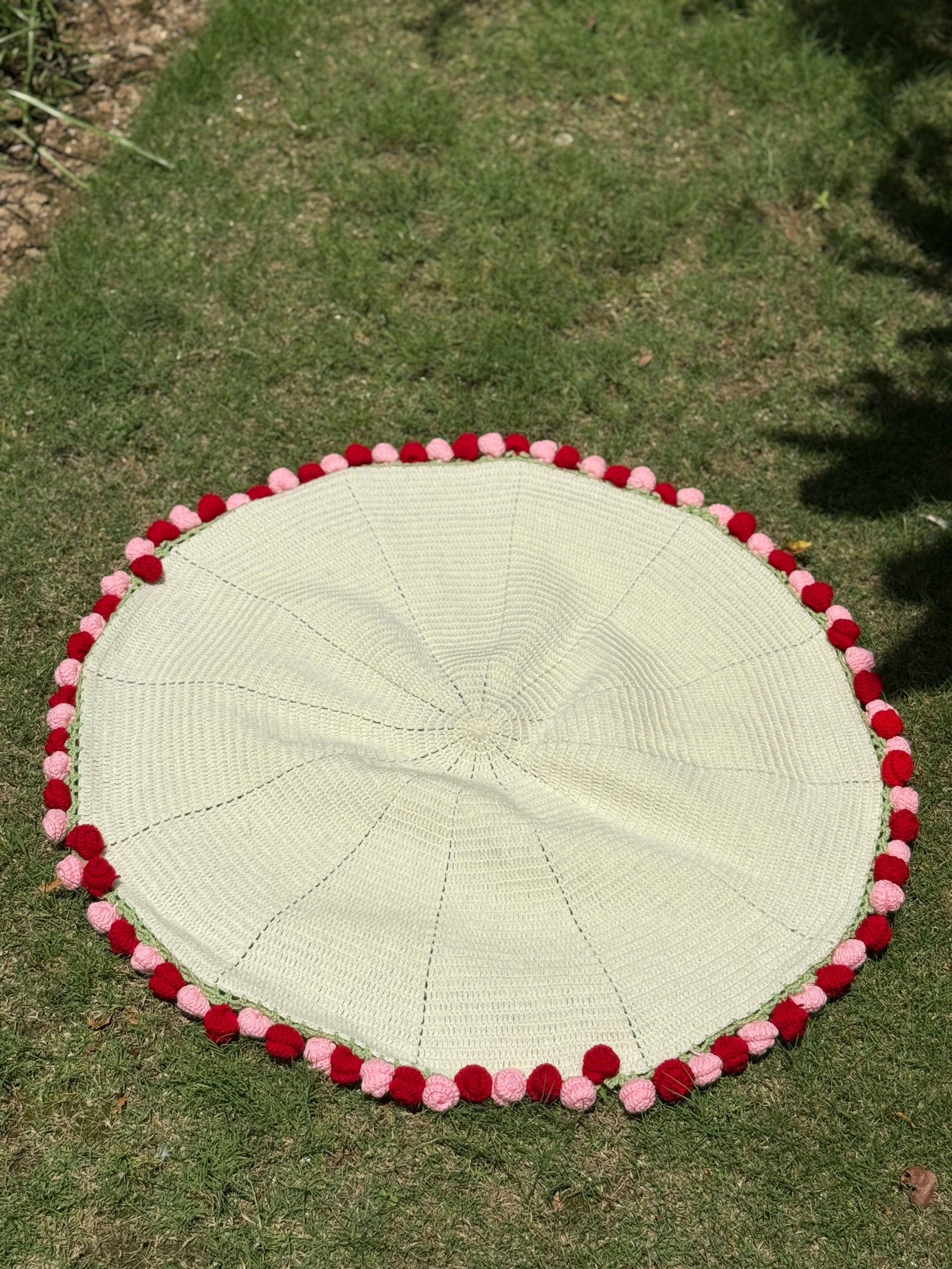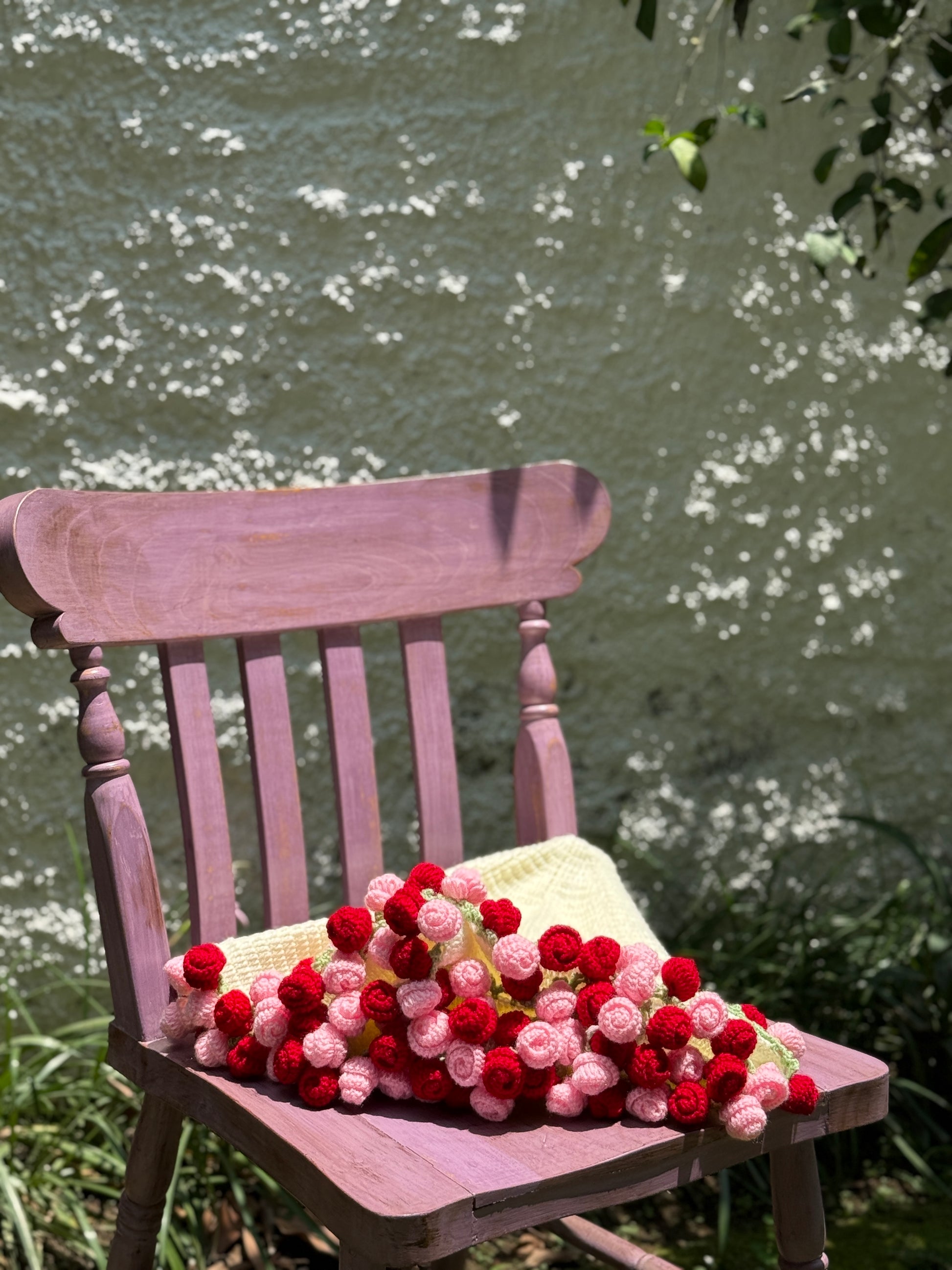 Indulge in the handcrafted beauty of this crochet viral bouquet blanket. Each stitch is lovingly created using high-quality 100% acrylic yarn, ensuring a soft and long-lasting finish. The captivating "viral" pattern forms the central focus, while a meticulously crocheted border of delicate roses adds a touch of timeless elegance. Measuring 35 inches in diameter, this blanket is a testament to the skill and artistry of crochet. Adding to its unique charm, this blanket can also be artfully folded to resemble a beautiful bouquet, making it a truly special and versatile piece.